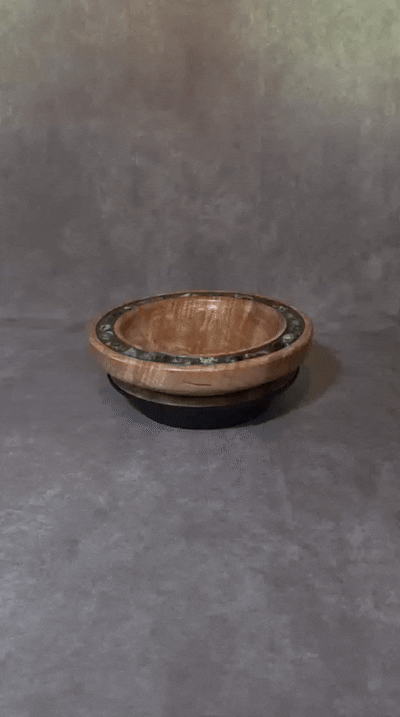 Curly Big Leaf Maple bowl with turquoise stone inlay